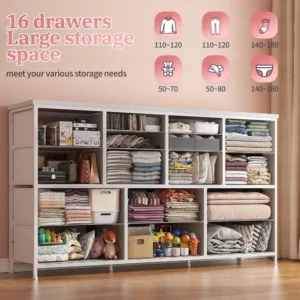Large Capacity 16 Drawers TV Stand & 3 Types Drawers Separate Storage